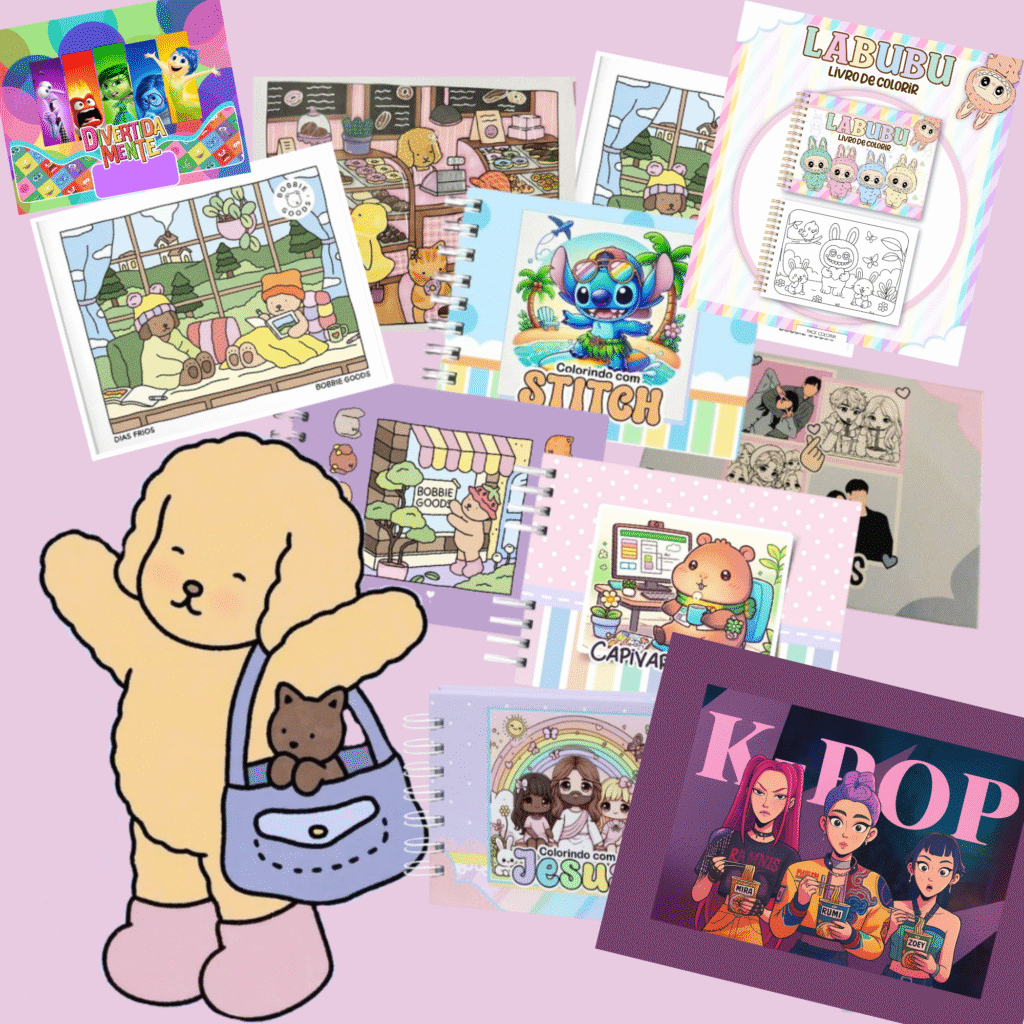 Tenha acesso ao KIT completo de livrinhos que inspiram a imaginação dos pequenos! São LIVRINHOS EM PDF PRONTOS PARA IMPRIMIR E COLORIR- Bobbie Goods, Guerreiras do K-Pop, Labubu, Lilo & Stitch, Princesas e muito mais.