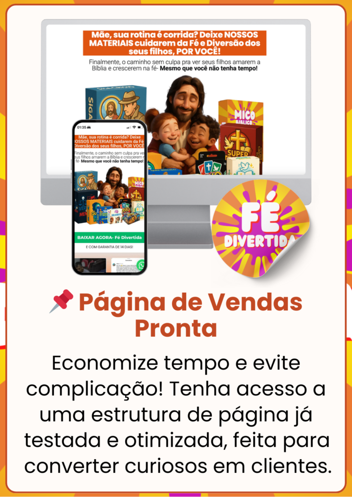 E foi justamente por isso que criei o Fé Divertida, um novo Caminho onde: você pode ter sua vida financeira transformada e de forma honesta, você é dona dos produtos, fica com 100% do Lucro, tudo prático e alinhada à sua fé, e o melhor, não precisa criar nada.